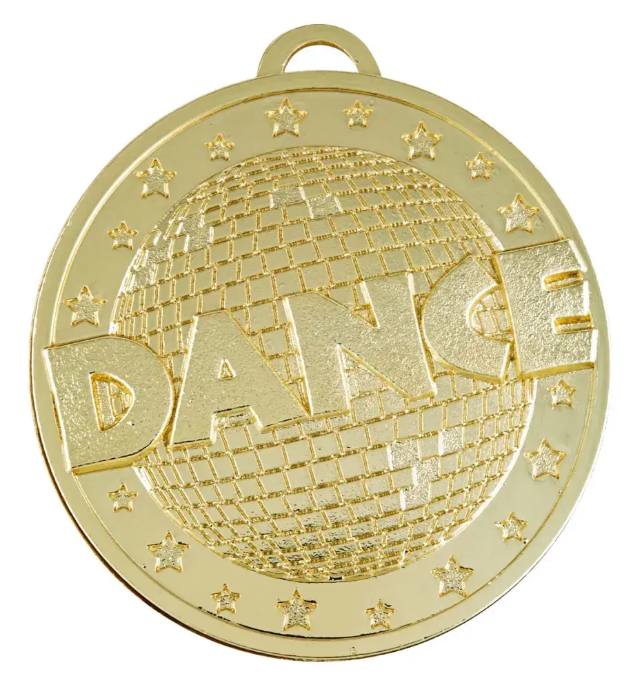 Bright gold and silver medals present a fun and generic design for your dancers. The design features glitter ball background, star trim and the word dance occupying a central position. Medal ribbons available in all colours.
