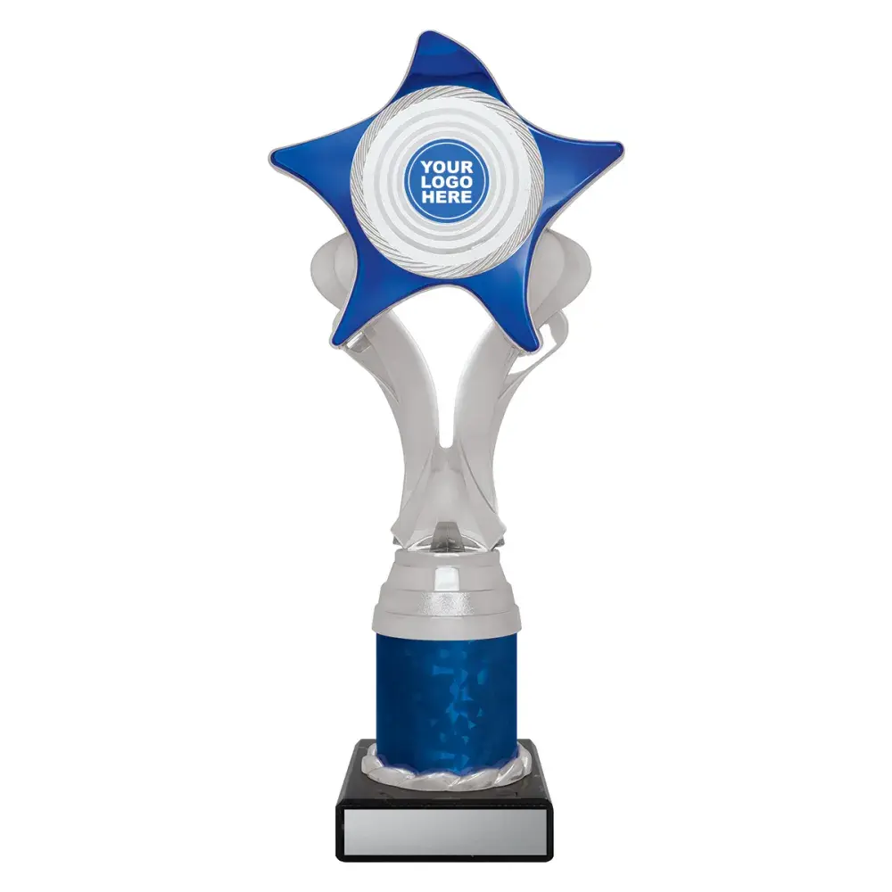 Radiant Athena holder series of trophies perfectly shows off your custom logo over a number of sizes. Choose colour combination to best suit your awards.