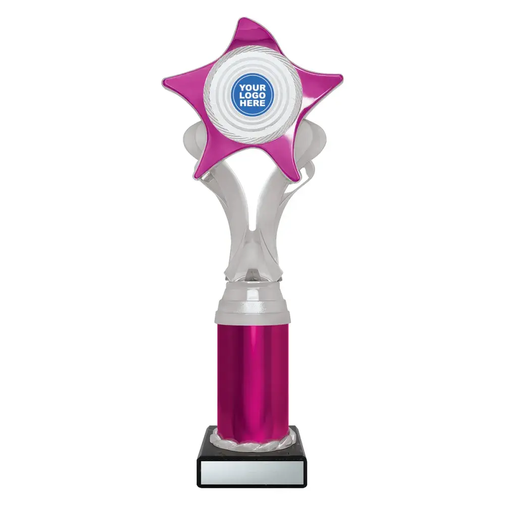 Radiant Athena holder series of trophies perfectly shows off your custom logo over a number of sizes. Choose colour combination to best suit your awards.