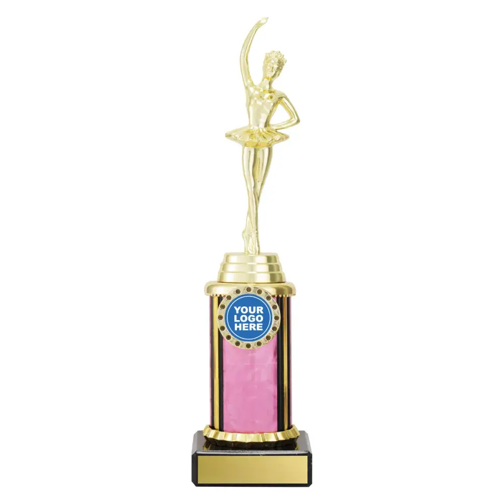 Perfect series of ballet trophies that can be used to show off your custom logo. Colour of column can be changed to suit your order. Interchange figures for your activity.