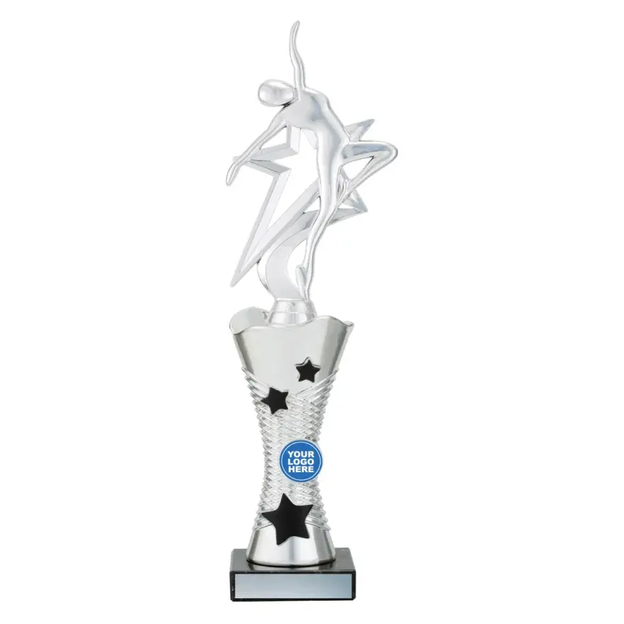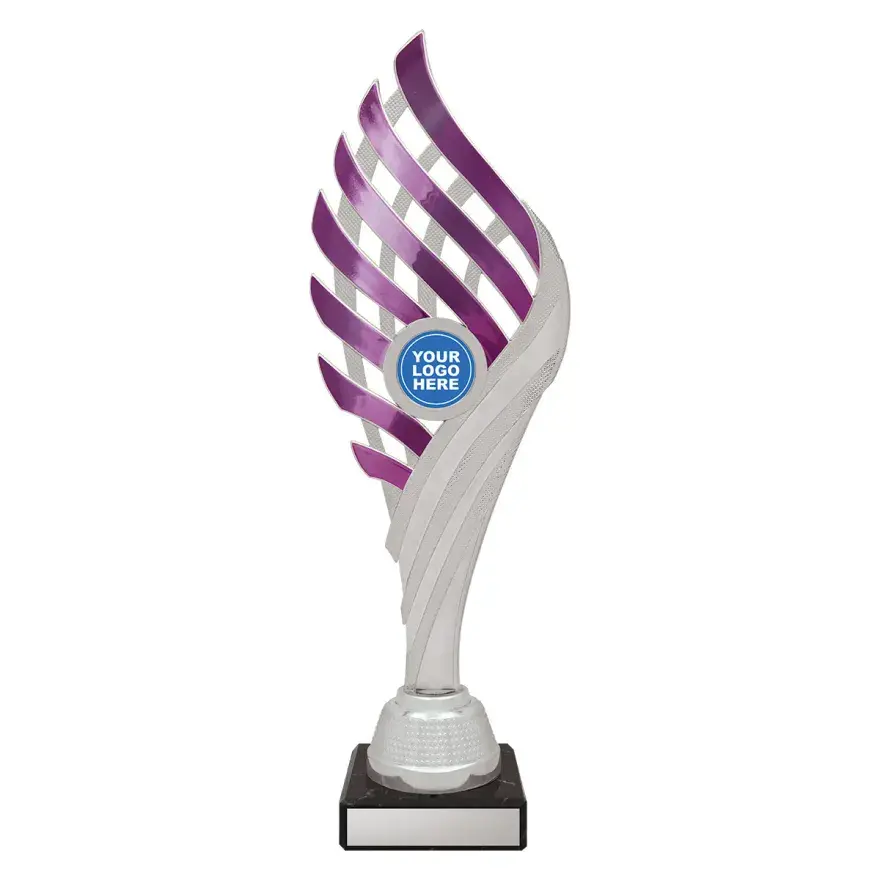 Carnival cups present a distinctive cup style trophy with attractive 3D design - on classic black marble base for your engraving - with brightly coloured insert for your sport. Trophies adaptable to your custom requirements.