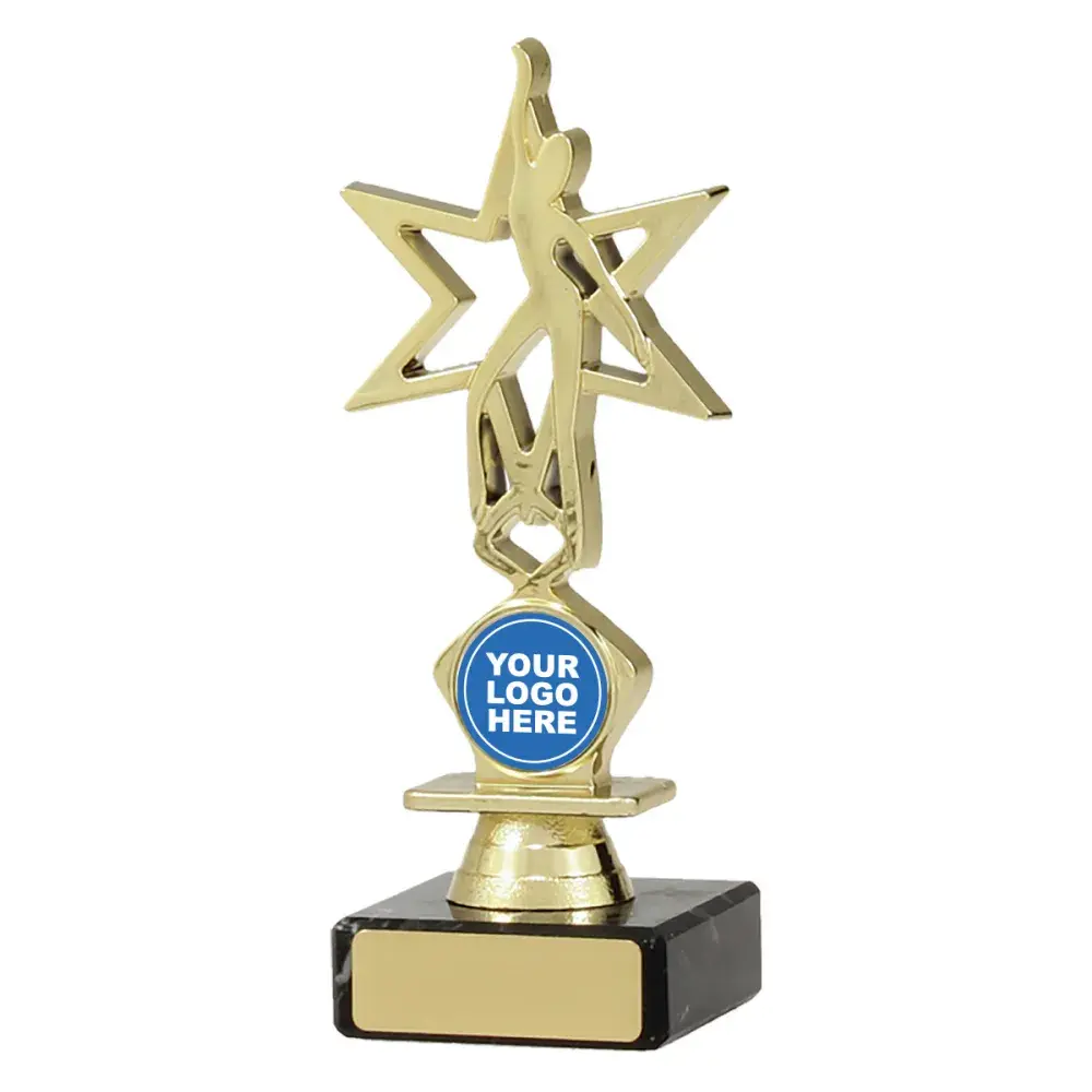 Series of dance trophies feature bright gold top representing an abstract dancer in star background. Effective design also allows for space for your 25mm insert.