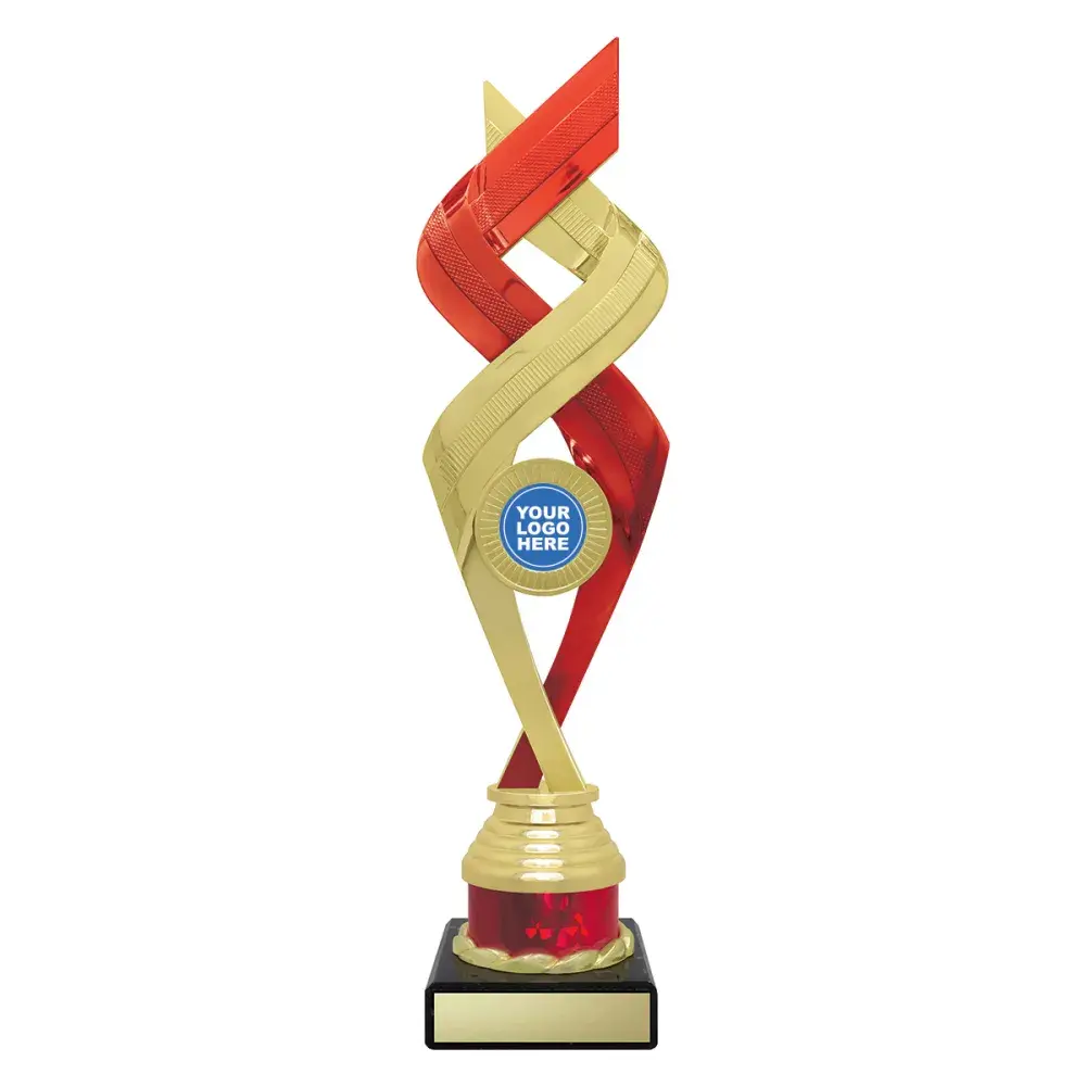 Stylish Jetstream series of holder trophies feature a complex design of intertwining elements and a central spot for your custom logo. Available in different colours.