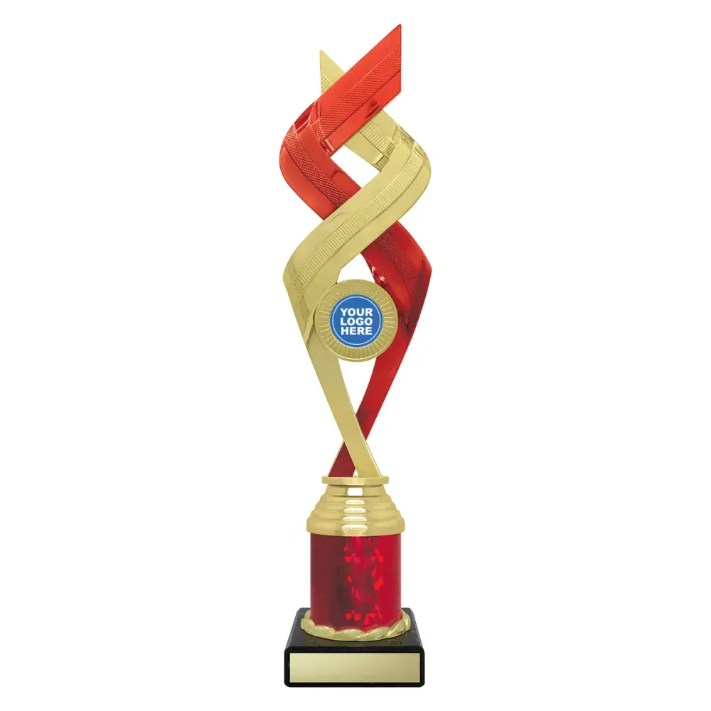Stylish Jetstream series of holder trophies feature a complex design of intertwining elements and a central spot for your custom logo. Available in different colours.