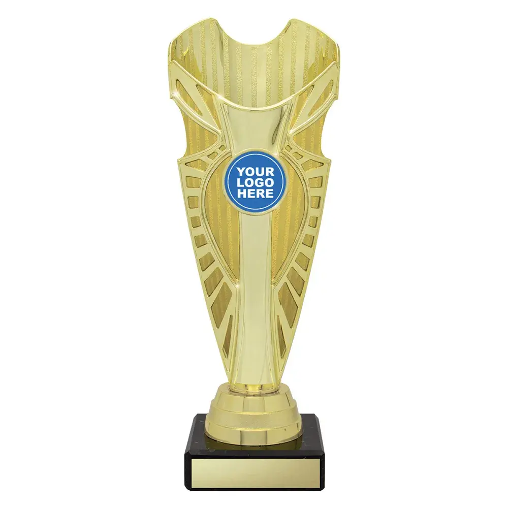 Shine Cups provide an impressive set of trophies with prime position for your custom logo. With different colours available, there is a range of great awards possible to complete your event or presentation.