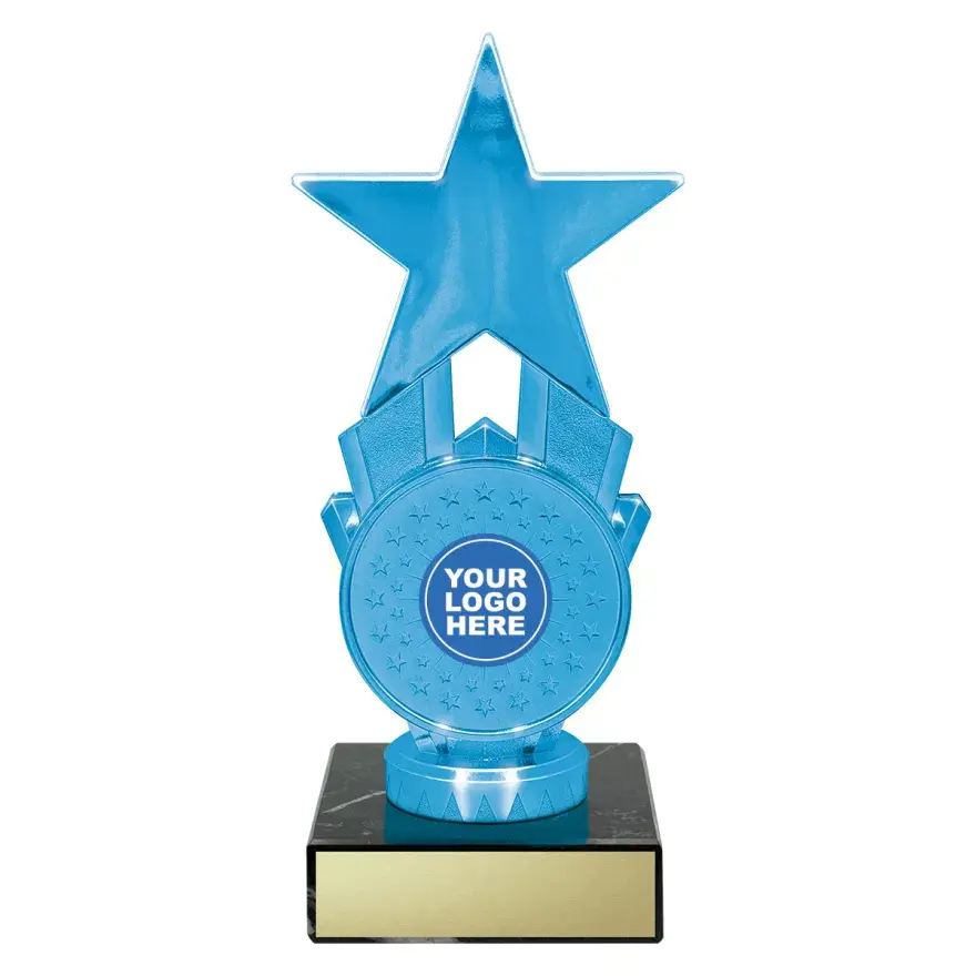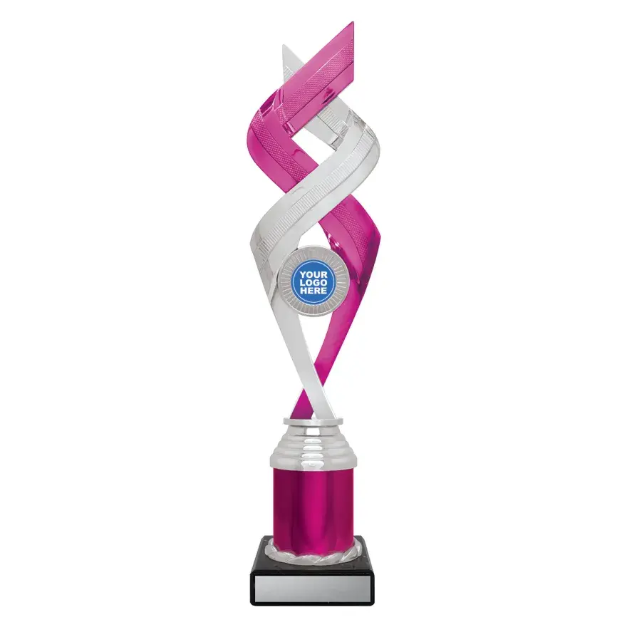 Outstanding series of dance trophies feature star riser component and brilliant abstract dance top in shiny silver. Change colour of column to suit your awards.