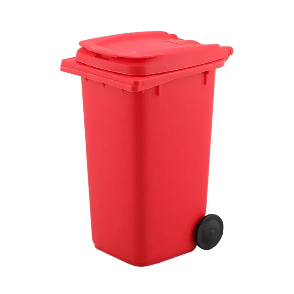 Mini plastic wheelie bin pen holder an desktop stationery organiser large printing area for your green concept message and logo.