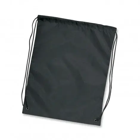 Affordable drawstring backpack which is manufactured from 210D polyester and has riveted metal eyelets at the base for added strength.