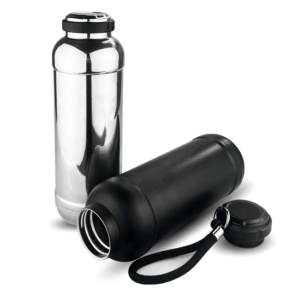 The 615ml Adventure Vacuum Bottle is perfect for spontaneous events, combining functionality with sleek design. Made from food-grade 304 stainless steel, it keeps drinks cold for 18 hours. Featuring a screw-on lid, hand strap, and non-slip base, it’s available in black or silver. Presented in a kraft paper box, ideal for branding.