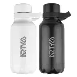 Stylish 500ml vacuum insulated 304 stainless steel bottle with a secure screw on 304 stainless steel lid and a soft-touch silicone strap that doubles as a carry handle. BPA free. Hand wash only do not microwave.