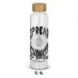 Sophisticated 600ml borosilicate glass drink bottle which has a trendy screw on bamboo lid.