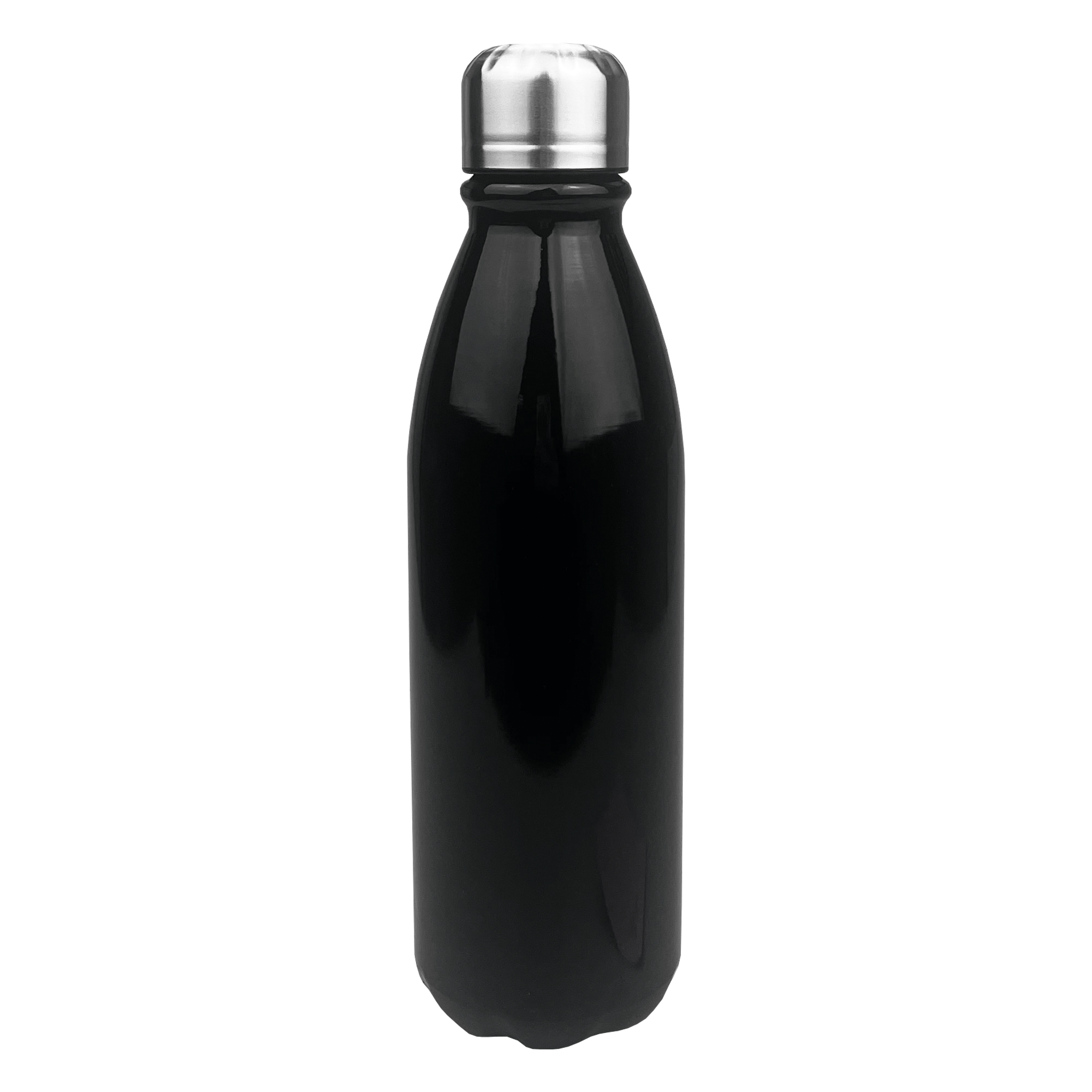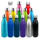 Trendy design 750ml BPA free aluminium single walled drink bottle with shiny colour finishing. High quality leak proof with a silver stainless screw on lid. Laser Engraves to silver natural colour. Handwashing is recommended.