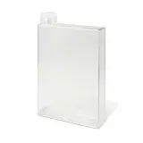 Futuristic 500ml water bottle which is shaped like a notebook with a secure screw on lid. It is manufactured from crystal clear PS which is BPA-free. The bottle is designed to slide easily into bags alongside books, laptops and folders etc. It can also be conveniently carried in one hand along with a tablet or a notebook. This product is not dishwasher safe and handwashing is recommended.