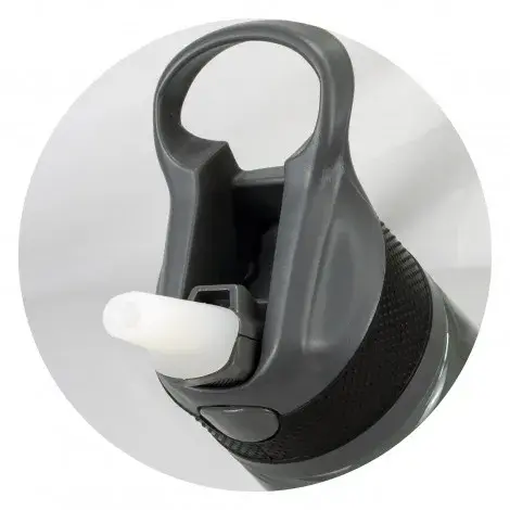 Timeless 800ml water bottle which has a secure screw on lid that has a carry handle. Rover is manufactured from polyethylene which is durable and lasting. Other features include a push button release for the flip-out drinking valve with a straw. This product is not dishwasher safe and handwashing is recommended.