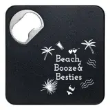 Introducing the Quench Bottle Opener / Coaster, your versatile companion for entertaining. This combination features a nickel-plated steel bottle opener integrated into a coaster, with EVA foam on the back for stability and surface protection. Available in black or white, it offers a great full cover print area, making it ideal for personalization and promotional use.