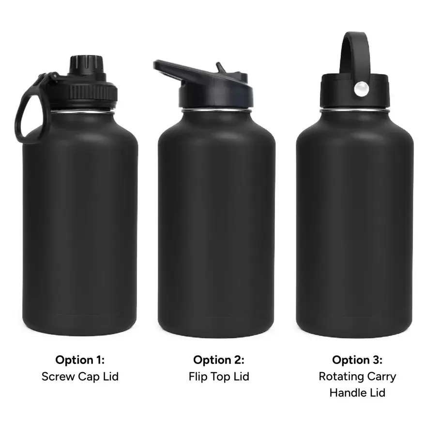 Custom LAPEN 1800ml Vacuum Bottle - 3 Different Lid Options Black