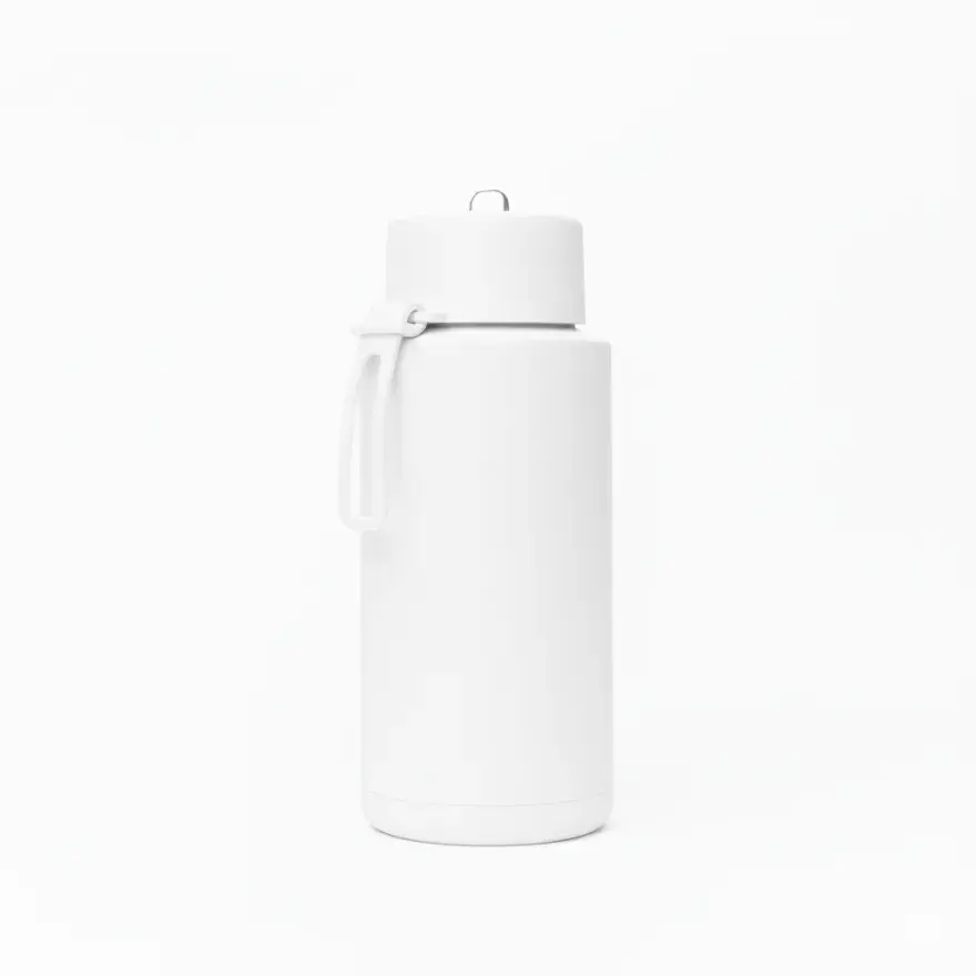Custom 1L Stainless Steel Bottle with Silicone Handle White