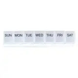 Keep your medication or supplements on track with this compact, travel-friendly weekly organiser. Easy-to-use pop out individual compartments for each day help you never miss a dose.