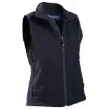 Ladies wind and water repellent softshell vest.
