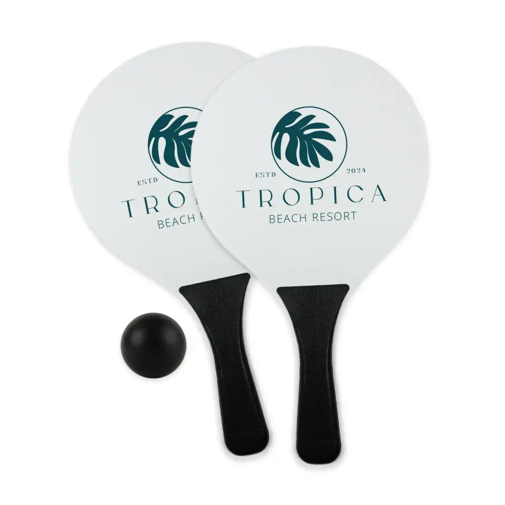 Introducing the Action Paddle / Bat & Ball Set LL3114, an essential for active lifestyles. This set includes 2 paddles and a ball, all conveniently stored in a sleek black drawstring pouch. Perfect for promoting healthy living campaigns and available in 4 vibrant colours. Ideal for active fun at the beach, park, or anywhere outdoors, offering portability and easy storage.