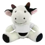 This soft sitting cow plush toy is made of soft plush cover and stuffed with fluffy stuffing with bead eyes and optional polyester T-Shirt in 11 colours are available. This cute cuddly cow plush toy is a great way to display your logo and get your message across.
