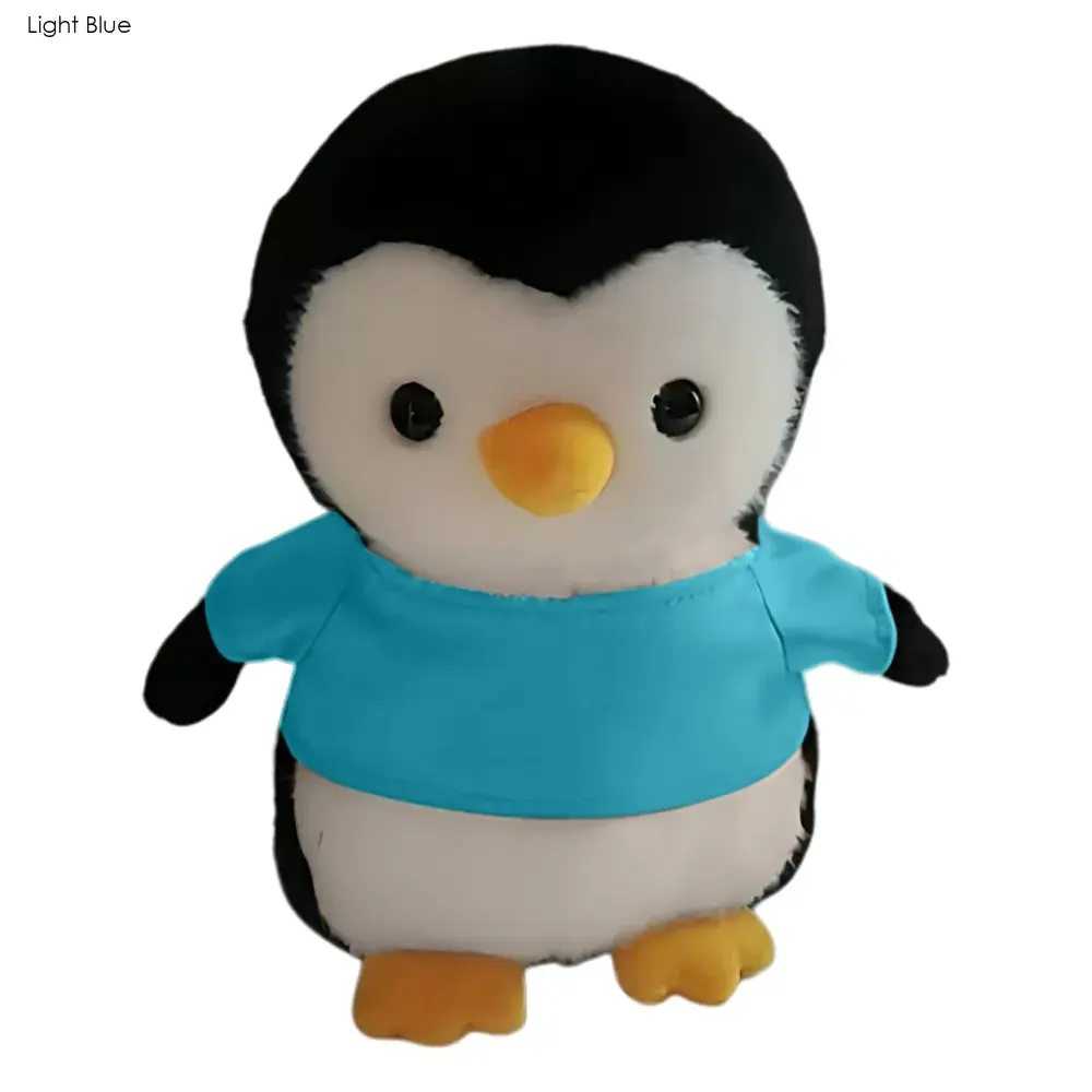 This soft sitting pengiun plush toy is made of soft plush cover and stuffed with fluffy stuffing with bead eyes and optional polyester T-Shirt in 11 colours are available. This cute cuddly penguin plush toy is a great way to display your logo and get your message across.