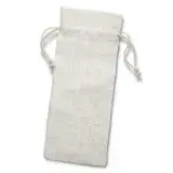 Natural unlaminated jute drawstring wine gift bag with cotton drawstrings.