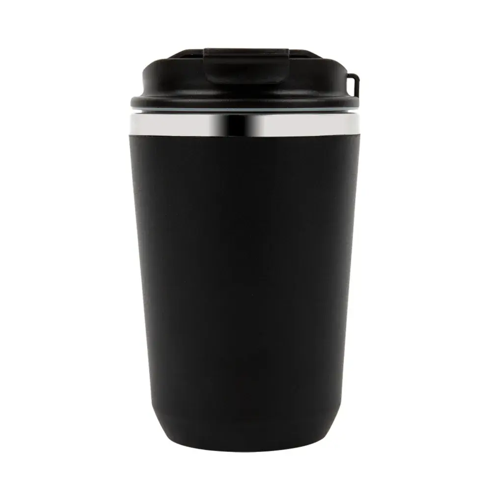 Heron Coffee Cup: 400ml capacity, stainless steel insulated inner, flip-top lid, and matte PP outer.