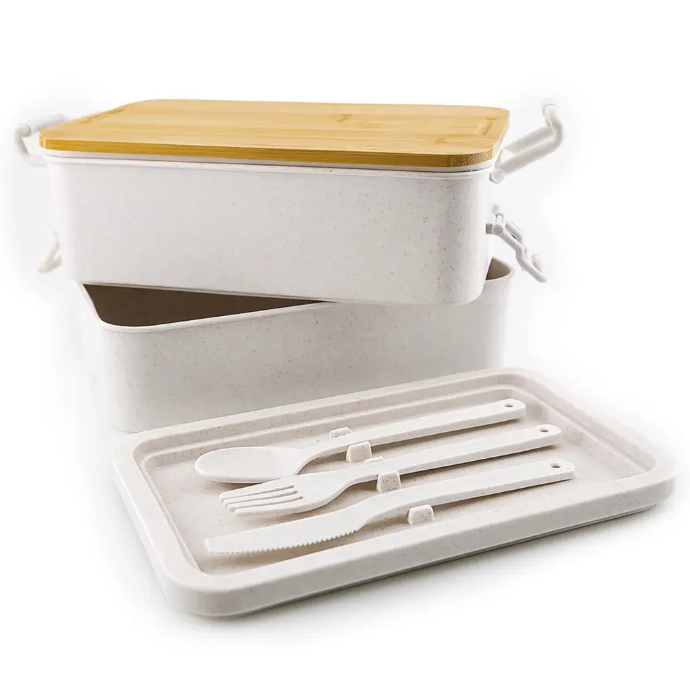Sturdee Lunchbox: Double tray design (800ml + 1000ml) with bamboo lid/serving board and cutlery set.