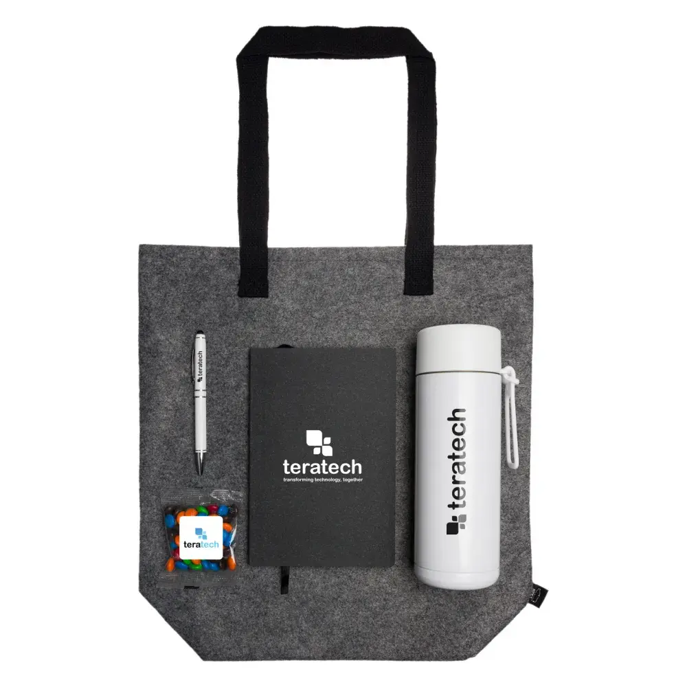 Decorated & Undecorated Orders: All items in the Onboarding Bundle come neatly packed inside the Montana RPET Gusset Tote Bag.
