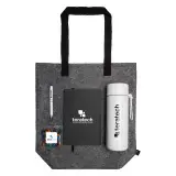 Montana RPET Gusset Tote Bag LL7041: 1mm thick RPET Felt, Polyester Handles; Astro Soft Cover Recycled Leather Notebook LL8541: Recycled Leather, Recycled Paper; Columbia Aluminium Pen LL3456: Aluminium; Zara 600ml Steel Bottle LL6947: 304 Grade Stainless Steel Outer, 201 Grade Stainless Steel Inner