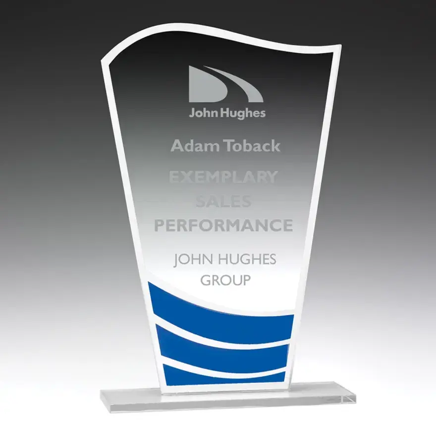 Range of elegant glass plaques in different colours finished off with premium metal trim holders ideal to show off your 25mm insert.