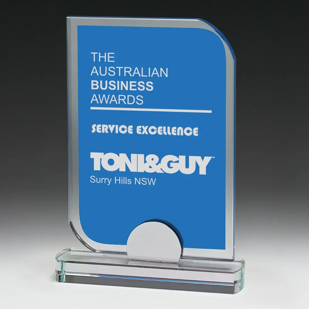 The Dovetail series of glass awards offer an elegant award designed to highlight your engraving and feature the intriguing interplay of glass, colour and metal.