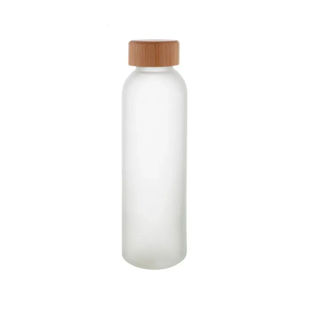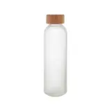 Made from frosted glass with a sleek matte finish. | 500ml capacity for everyday hydration. | Natural bamboo cap adds eco-friendly style. | Reusable and environmentally conscious. | Not suitable for carbonated drinks. | Perfect for home, office, or travel.