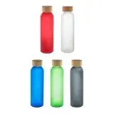 Made from frosted glass with a sleek matte finish. | 500ml capacity for everyday hydration. | Natural bamboo cap adds eco-friendly style. | Reusable and environmentally conscious. | Not suitable for carbonated drinks. | Perfect for home, office, or travel.
