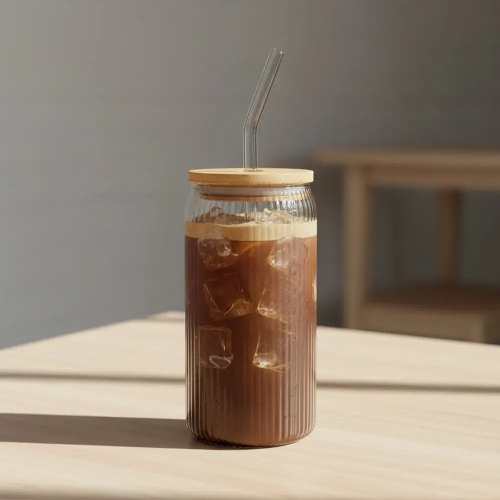 Elevate your morning routine with this stylish Olmos Glass Tumbler 550ml. Designed with a natural wooden lid, it keeps your beverages secure while adding a touch of modern elegance. The ribbed glass not only looks great but also provides a comfortable grip, making it perfect for iced coffees, smoothies, or cold drinks on the go. Handwash only, not dishwasher safe. Only compatible with cold beverages, not suitable for hot/boiling water beverages.
