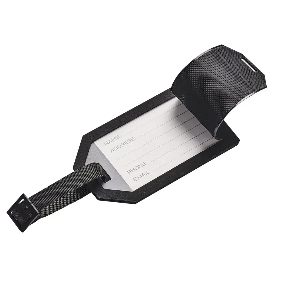 Make luggage identification easy! This luggage tag is made from durable HD material and has an adjustable webbing loop with buckle and transparent window with flap.