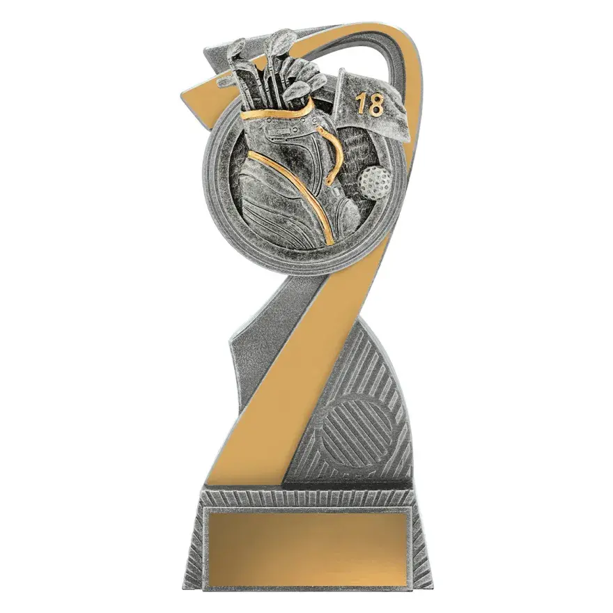 The Smash Series for Golf is a substantial award, a sculptured trophy line featuring a golf player and a golf ball in motion against a dynamic backdrop. Finished in gold and silver and available in 3 great sizes.