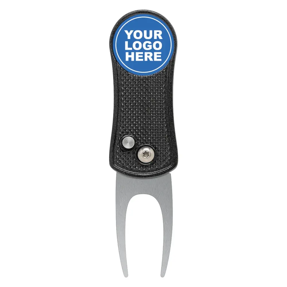 Handy golf tool for divot repair purposes - easily customise for your special event or competition.