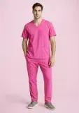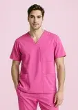 Custom Unisex Pink V-Neck Scrub Top