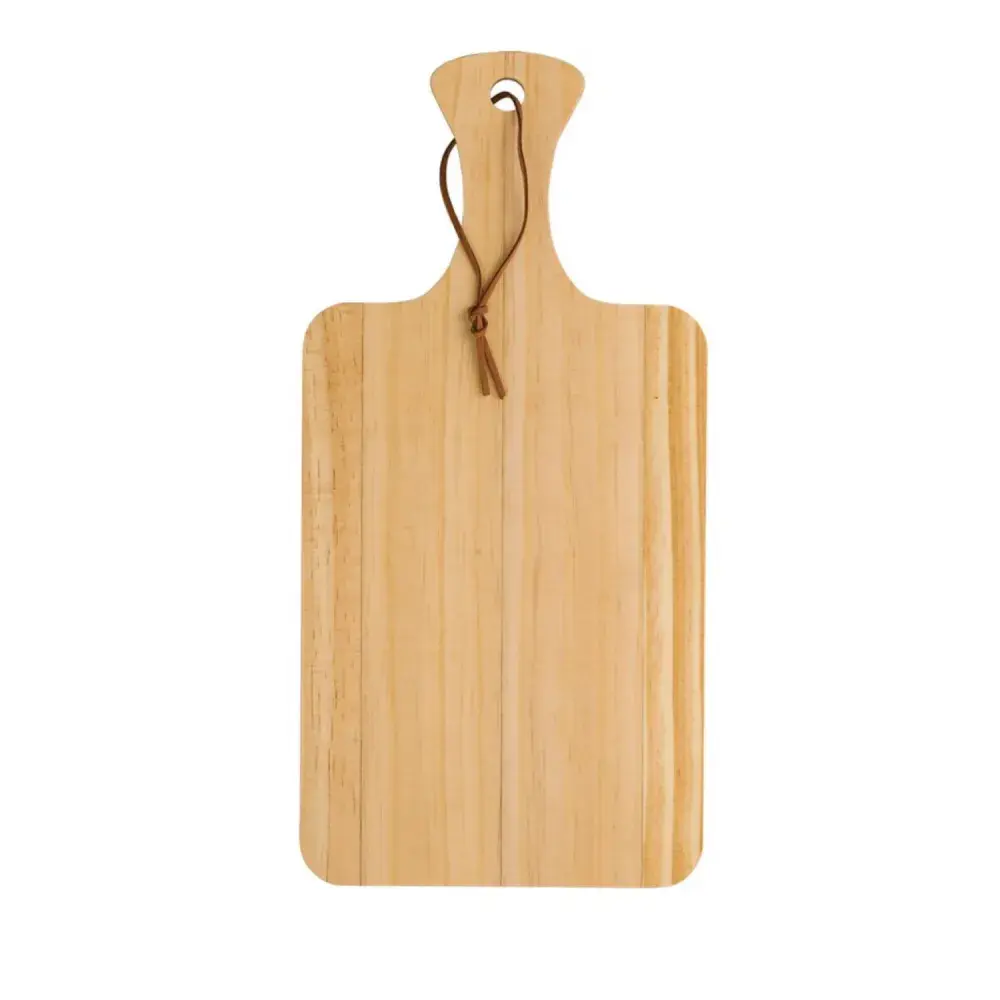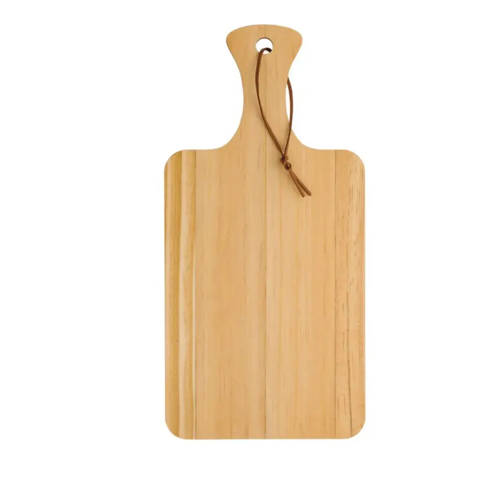 Crafted from natural pinewood | Smooth surface with visible wood grain | Hanging string for easy storage | Durable and lightweight | Multi-use: chopping, slicing, and serving | Eco-friendly material | Perfect for kitchens, hospitality, or promotional gifting