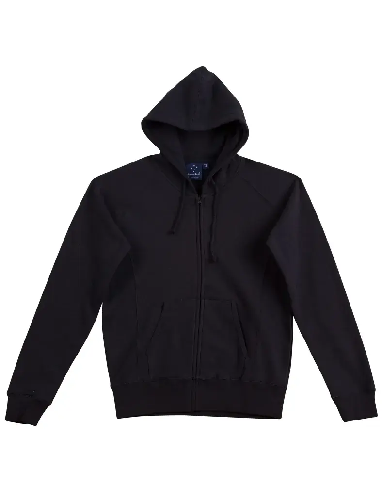 Description: A traditional fleecy hoodie with full-zip in the centre front. Two handwarmer pockets. A top design