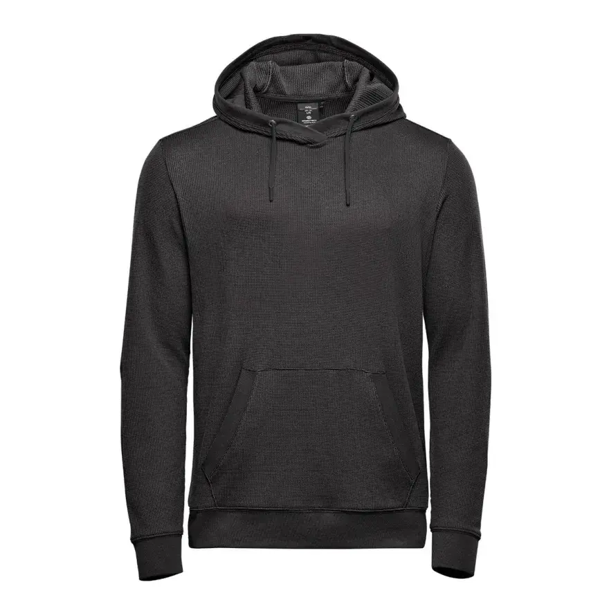 Fashionable hooded sweatshirt for men made of warm and soft cotton-polyester-blend with a modern and sporty design, kangaroo pocket, wide rib cuffs and wide draw cord. Brushed inside for extra comfort and warmth.