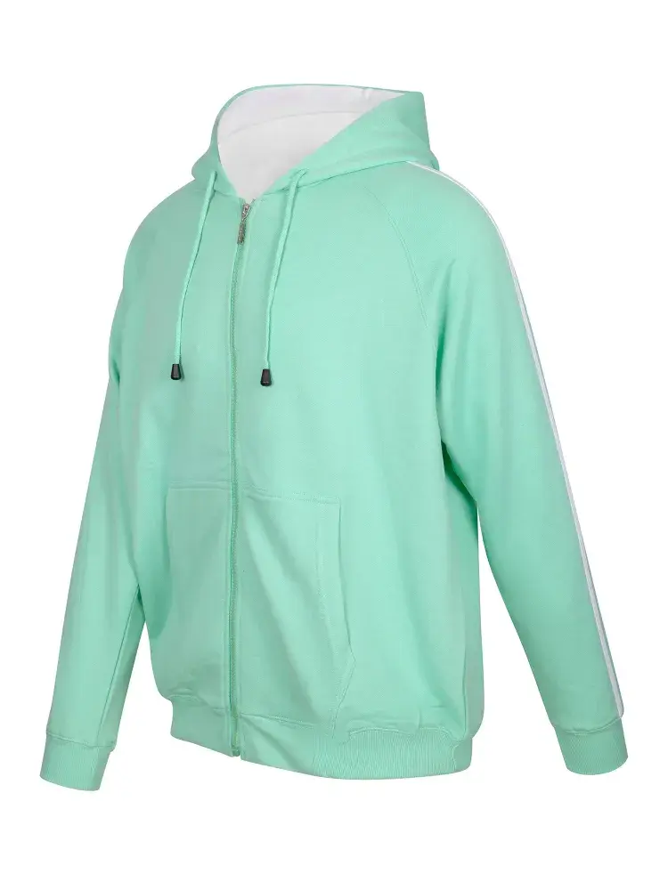 Custom Mens Unbrushed Stripe Sleeve Hoodie fresh mint/white XX