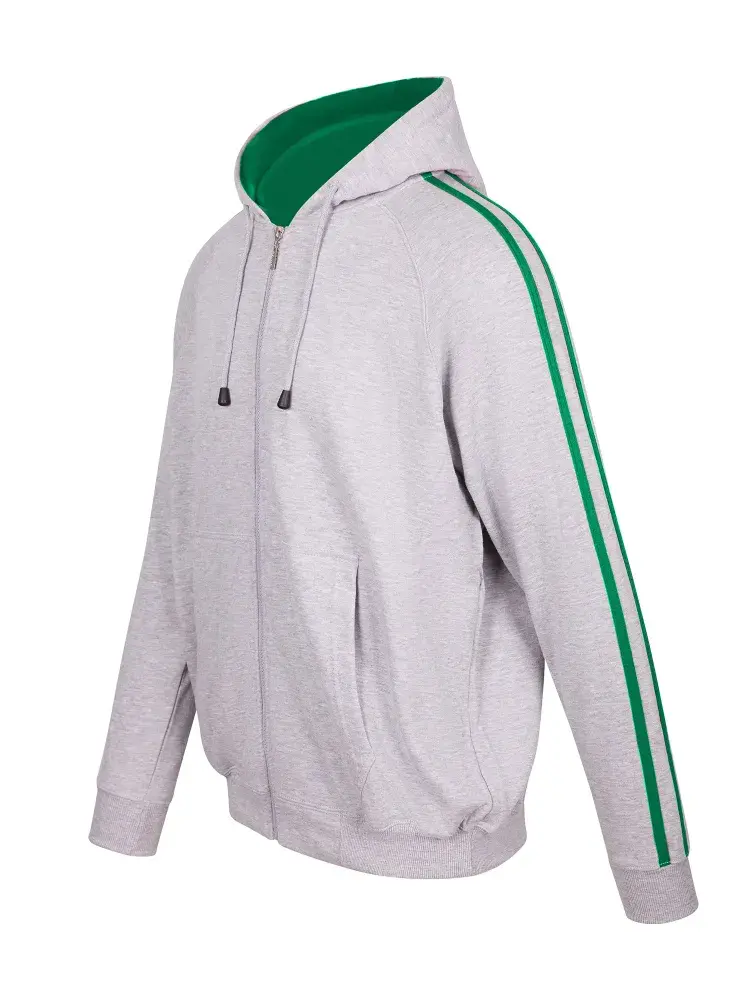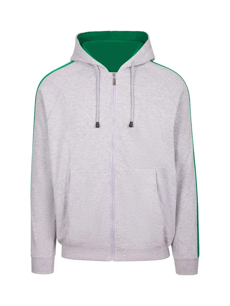 Custom Mens Unbrushed Stripe Sleeve Hoodie grey marl/kelly green S