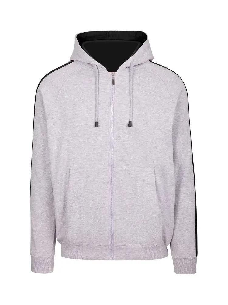 Custom Mens Unbrushed Stripe Sleeve Hoodie grey marl/navy XL