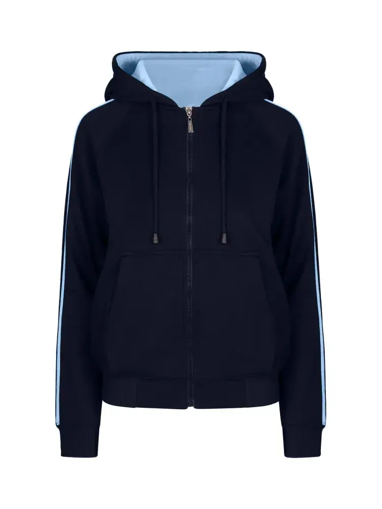 Custom Womens/Junior stripe sleeves Hoodies navy/sky blue (size: 10)