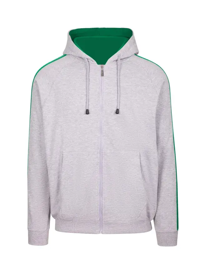Custom Mens Unbrushed Stripe Sleeve Hoodie grey marl/kelly green L