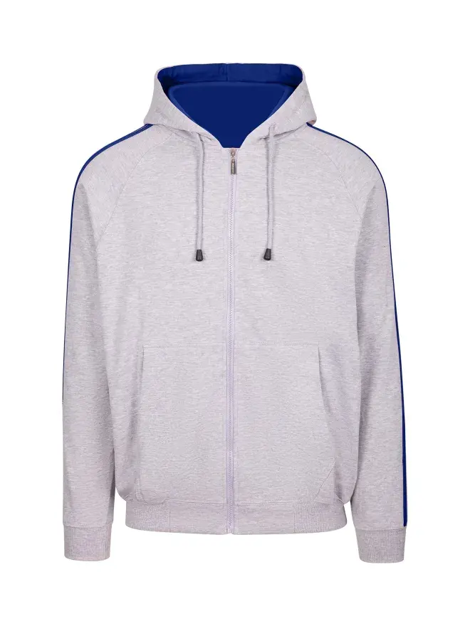 Custom Mens Unbrushed Stripe Sleeve Hoodie grey/royal L