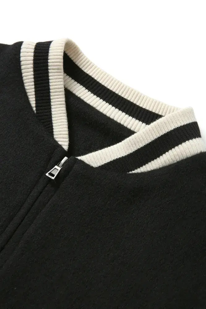 Custom 500gsm Men's/Unisex Wool Blend Soft Shell Varsity Jacket black/white M